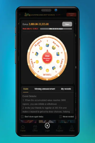 We bring you the best mobile game – 365 Win Game! Our app lets you play fun casino games and earn real money. You can enjoy popular games like roulette, blackjack, and live dealer games. You can start with small bets and make more money with bonuses and by inviting friends. For every friend who joins, you get Rs. 600, and you also earn 10% of their first deposit! The app is safe to use. It protects your money and personal info with strong security. There’s also 24/7 support, so help is always available.